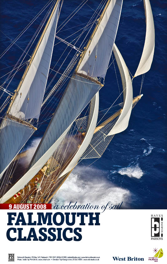 Falmouth Classics Poster ......Photo of ADIX by Phil Uhl FALMOUTH CLASSICS POSTER RELEASED The Official Poster for the Falmouth Classics Regatta has just been released in England. The design by Christian Topf Design, of Falmouth, features a dramatic shot of the three-masted schooner ADIX. . . Lakeside Ohio.................
