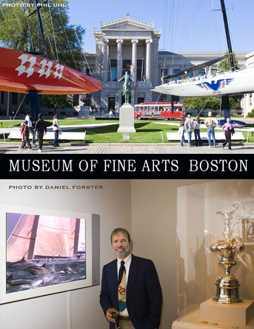Museum of Fine Arts "The Things I love" (William I. Koch Collection) August, 31 through November. Two video programs on the 1992 and 1995 America's Cup defense efforts by the America 3 Foundation, were produced for this exhibition. They are being shown non stop, on a large screen monitor in a special alcove next to the America's Cup Trophy. http://www.mfa.org/exhibitions/sub.asp?key=15&subkey=519 http://www.rainydaymagazine.com . Los Angeles.............