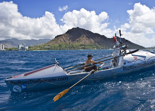 Roz Savage arrives in Honolulu HONOLULU, Hawaii, September 1, 2008 Roz Savage, on a bid to become the first woman to row solo across the Pacific Ocean, today arrived in Waikiki, Hawaii, aboard her 24-foot rowboat named The Brocade, after title sponsor Brocade® (Nasdaq: BRCD). The milestone is the first on a three-leg journey across the Earths largest ocean to raise awareness of the plight of the worlds oceans. Roz rowed more than 2,900 miles in 99 days after departing under San Franciscos Golden Gate Bridge on May 25, 2008.