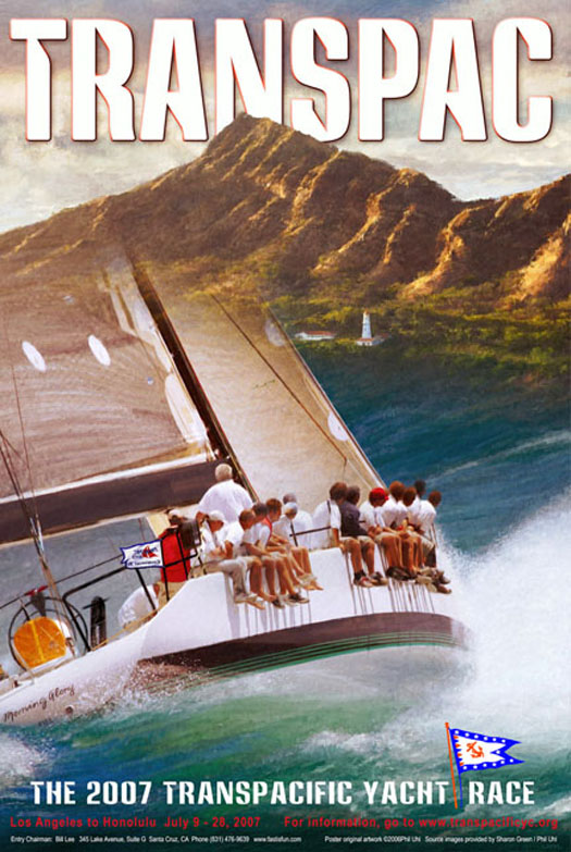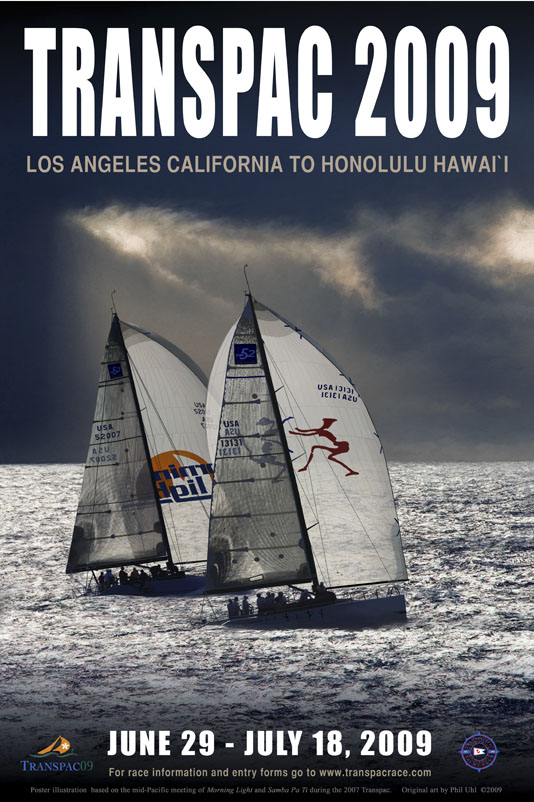 TRANSPAC 09 OFFICIAL POSTER PUBLISHED The Transpacific Yacht Club has just released the official poster for TRANSPAC 2009. The poster features my recent digital painting " Morning Light Samba" which is based on the Mid Pacific meeting of Morning Light and Samba Pa Ti during the 07 TRANSPAC. "Morning Light Samba" is available as a limited edition original print on canvas or paper. It has been released in an edition of 25 SN original prints with 5 artists proofs. . . Honolulu.......................All Things Hawaiian
