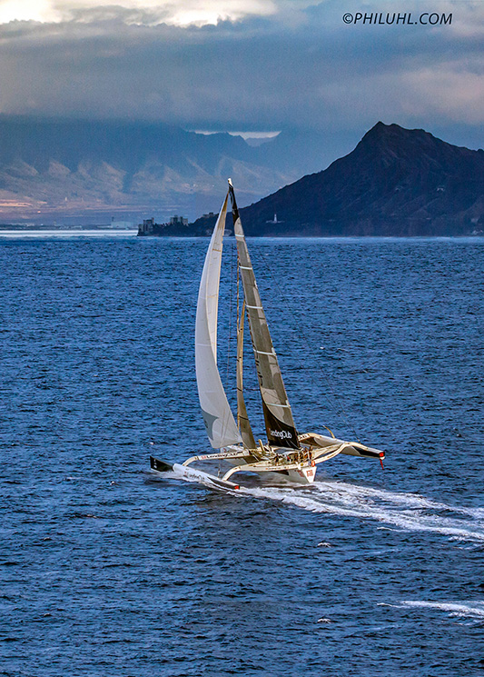 | Got a call from the Lending Club sailing team less than a day before the 105 ' trimaran was due to complete their attempt to break the Los Angeles to Honolulu sailing record. They wanted me to film and videotape their arrival at the Diamond Head finish line.